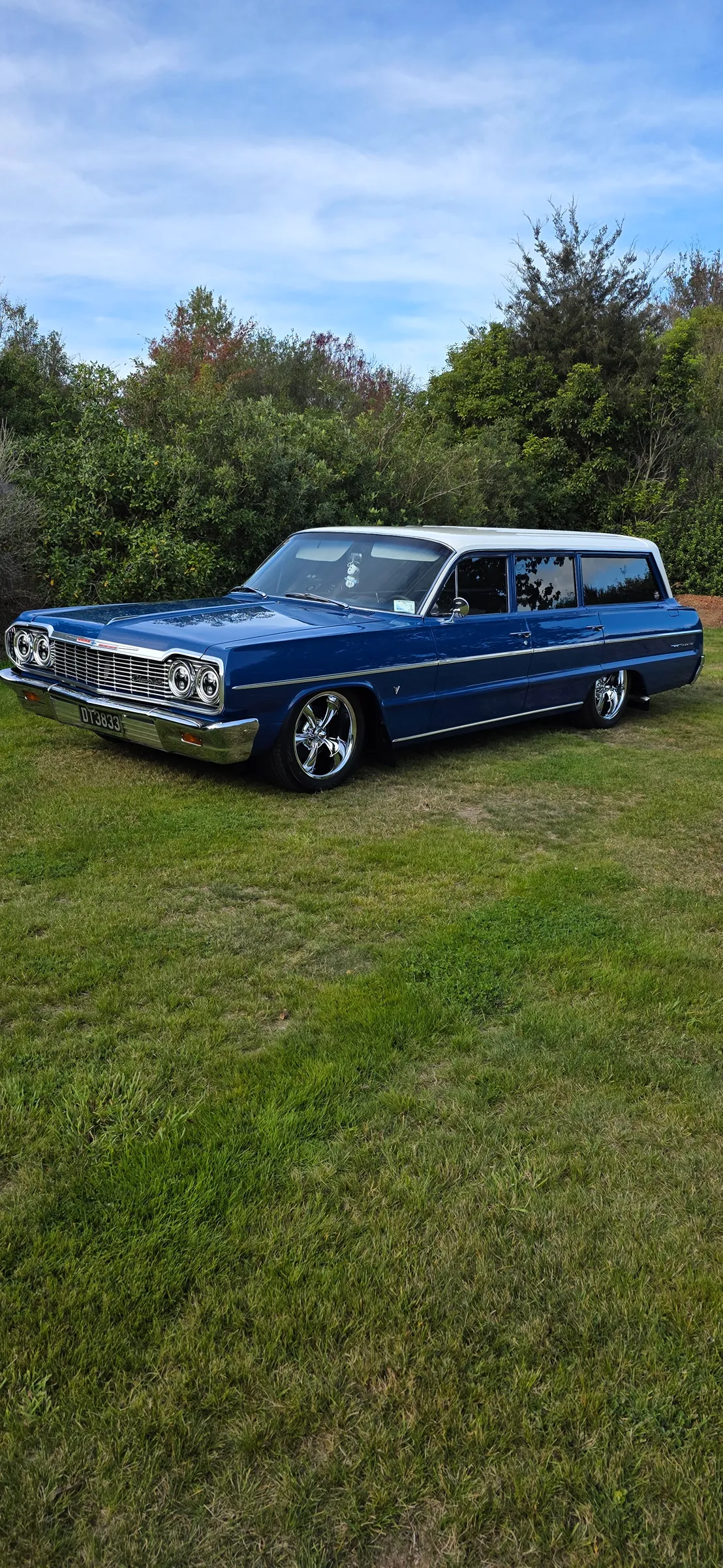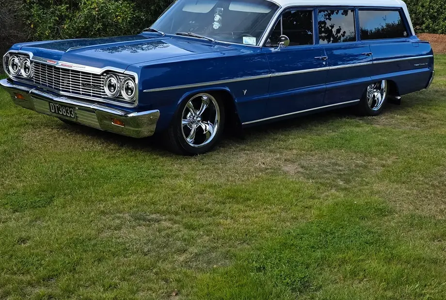 1964 chev bel air..had a major rebuilt 350k spent new panels floors chrome molding etc..all brand new. New 350 crate engine 2 speed power glide just rebuilt. New diff brand new mags and tyres. Huge stereo system can be removed from rear as got original flooring led light inside and out. New led halo front lights.. electronic open and shut headers by remote alarm . Lowered and rides very well..power steer. Upgraded stay bars and spring so handles well and doesn't wallow around. This had a major rebuilt to a very high standard and has won many awards. Paint and panel is still like brand new with no rust at all anywhere. Underneath all under sealed. Very reluctant sale but has to go as too many toys . Has done many long trips and goes well